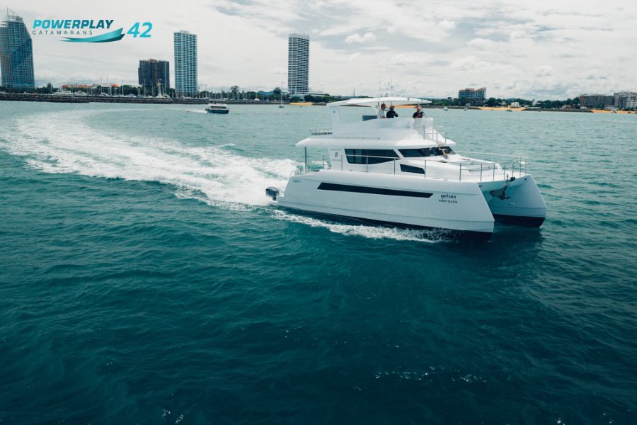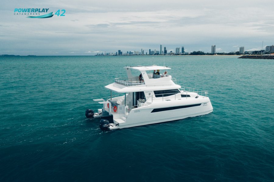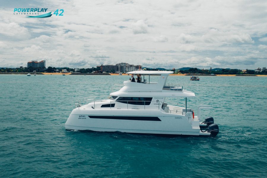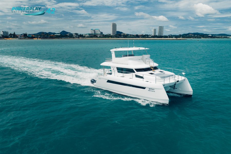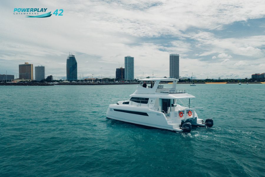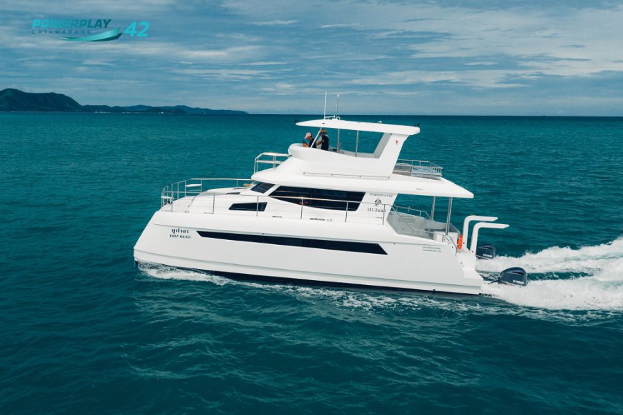 Introducing the Powerplay 42 Charter Power Catamaran – a high-performance, 4-cabin vessel designed to elevate your charter operations through a perfect blend of luxury, efficiency, and reliability. Built using advanced FRP vacuum infusion to ISO 1227 standards, the Powerplay 42 offers lightweight strength, smooth cruising, and long-range capability. With charter-ready functionality, refined interior finishes, and optional high-tech upgrades, this stunning power catamaran delivers both leisure and profitability in one sleek package