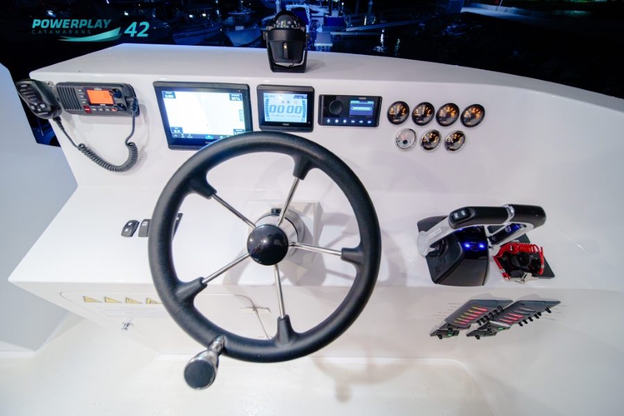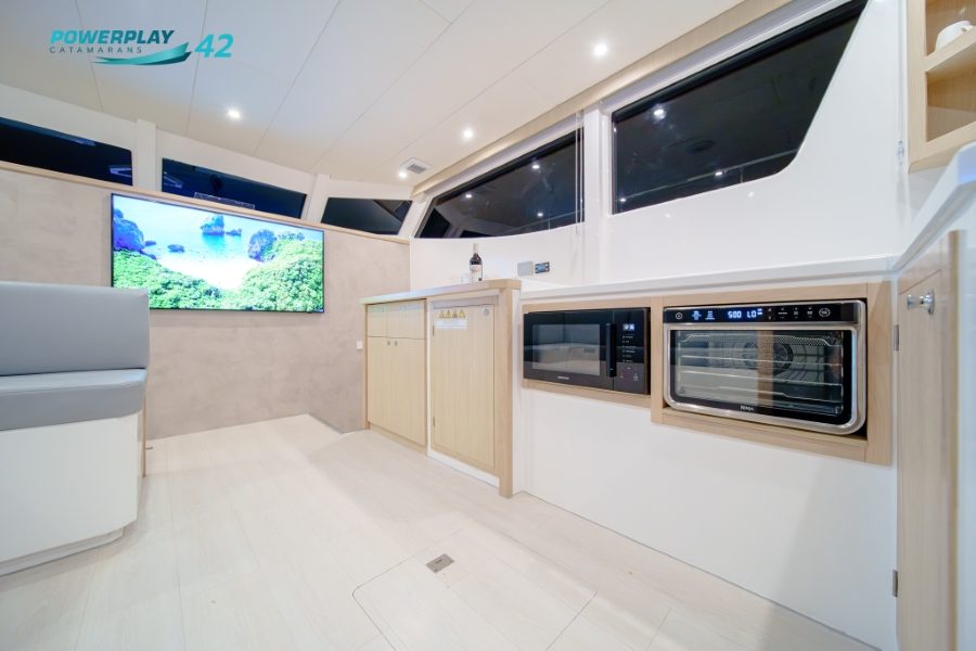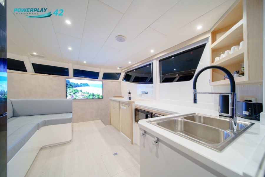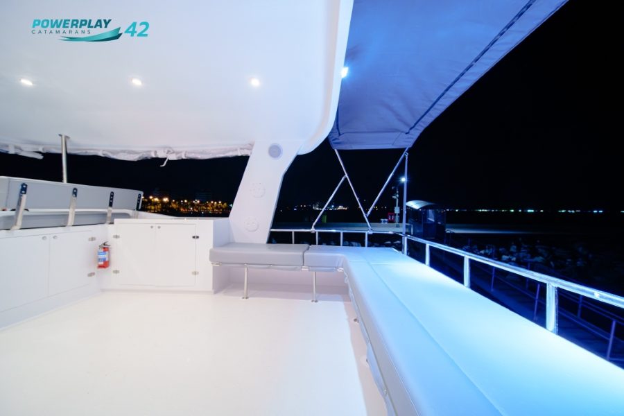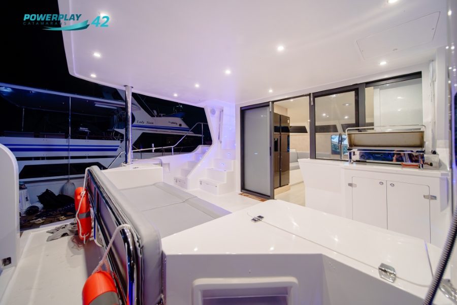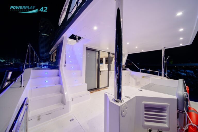 Introducing the Powerplay 42 Charter Power Catamaran – a high-performance, 4-cabin vessel designed to elevate your charter operations through a perfect blend of luxury, efficiency, and reliability. Built using advanced FRP vacuum infusion to ISO 1227 standards, the Powerplay 42 offers lightweight strength, smooth cruising, and long-range capability. With charter-ready functionality, refined interior finishes, and optional high-tech upgrades, this stunning power catamaran delivers both leisure and profitability in one sleek package